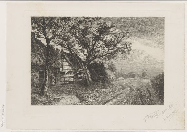 Jerôme Tuyttens created this landscape with farmhouses and a mill with etching. Note how the composition is structured around a strong contrast between the densely worked foreground and the ethereal background. The buildings are defined by tight clusters of short, dark lines that give them a solid, almost weighty presence, while the sparse lines of the background barely suggest the presence of the mill. This contrast is not just about light and dark, it's about degrees of definition, creating a sense of depth. This etching employs the technique of atmospheric perspective, where distant objects appear less distinct. Tuyttens challenges our perception, suggesting that what we see is not just about what is there, but how it is defined. The etching doesn't just represent a landscape; it explores how we perceive it, inviting questions about the relationship between reality and representation.