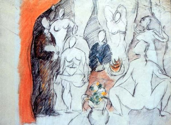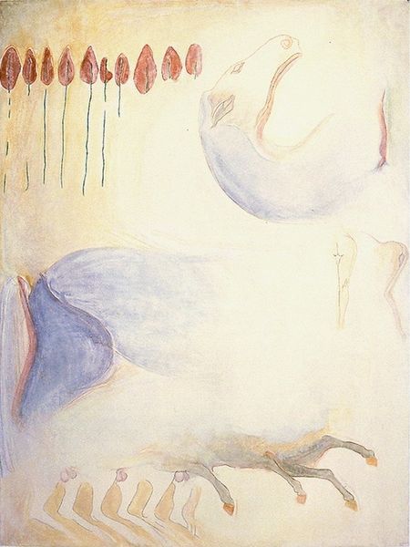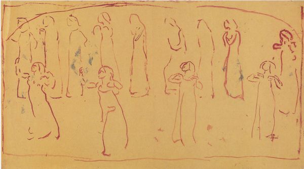 Edvard Munch made this painting, Naked Figures, using thin washes of paint on paper. The marks are so provisional, so like a quick sketch, that the painting feels like it’s still in the middle of becoming something else. There’s a beautiful blue outline around the figures, setting them apart from the ochre ground. The skin tones are pale pinks and oranges, applied so thinly you can see the paper underneath. I love the way you can see the artist feeling their way around the image, trying to find the right position for the figures. Look at the way the blue line trails off down the right hand side – it reminds me of a Cy Twombly. This is art as a process, a way of thinking through making, a space of constant searching.