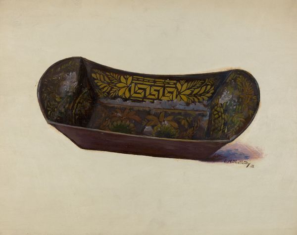 Eugene Shellady painted this bread or apple tray, the date is unknown, rendered with careful detail. The tray, adorned with floral motifs and bordered with laurel-like leaves, evokes a sense of domestic harmony and plenty. Consider the symbolism imbued in these botanical elements. Flowers, universally emblems of beauty and ephemerality, and foliage reminiscent of laurel wreaths—ancient symbols of victory and honor—suggest the enduring human desire to elevate the mundane. We find similar adornments on Roman serving vessels, and even echoed in Renaissance cornucopias overflowing with nature’s bounty. Through the ages, the flower has sprung up, from ancient Minoan frescoes to a Van Gogh canvas. It acts as a silent carrier of cultural memory, subtly reminding us of the cycles of life, death, and rebirth. In Shellady's tray, this visual language coalesces, a collective memory resonating through the object and stirring in the viewer's subconscious.