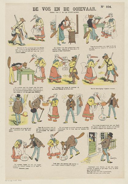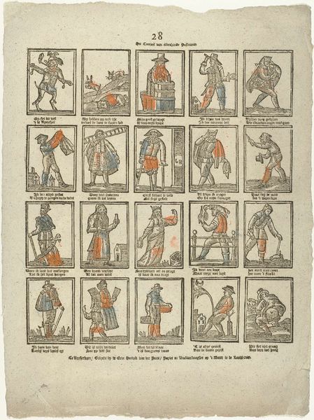 This print, made by Broese & Comp., sometime in the late 18th or early 19th century, offers a glimpse into the economic activities of the Dutch Republic. The text above the images translates roughly to: "This print teaches you, oh dear youth! How you can earn your living, if one is not lazy, and has money, to start a trade." The print depicts a range of professions, from merchants and craftsmen to street vendors and laborers. What stands out is the diverse participation of women in the workforce. They are shown selling fish, vegetables, and textiles, highlighting their economic contributions in a time when their roles were often confined to the domestic sphere. This visual representation challenges traditional narratives. These images offer a view into the lives and labor of ordinary people. They also subtly reflect the societal values of hard work, trade, and economic opportunity that shaped the Dutch Republic. The artist seems to suggest that prosperity is available to anyone willing to engage in commerce.