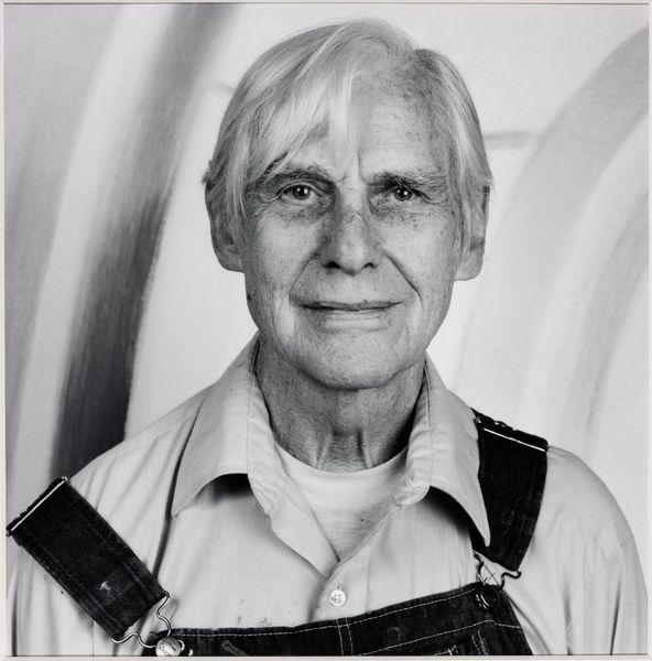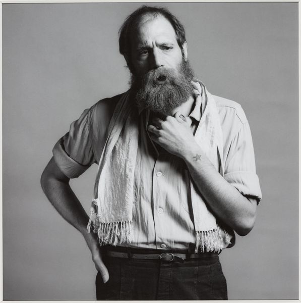 Curator: This is Bruce Cratsley's photographic portrait, titled "Jonathan Fagin," currently residing in the Harvard Art Museums. Editor: The intense contrast immediately strikes me—it's a face emerging from profound darkness, full of unspoken stories. Curator: The composition is indeed notable. The sharp focus on the subject's face against a blurred background, emphasizes texture and form. Editor: That moustache, especially, feels like a symbol of strength, almost an anchor, set against the softness of his gaze. The image feels masculine, yes, but there's more to unpack here. Curator: Precisely, it represents a fascinating study in light and shadow, the interplay between clarity and obscurity shaping our perception. Editor: Perhaps this image is about the masks we wear and the self we conceal. Curator: It’s clear this portrait offers rich grounds for formal examination. Editor: Indeed, the image compels one to contemplate the stories etched within a face.