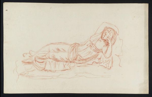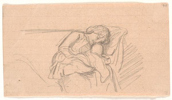 Editor: This is a pencil sketch called "Lazy Man," attributed to Ludwig Schwanthaler. It gives off a sense of quiet and stillness. What do you see in this piece? Curator: The rough sketch emphasizes the labor of creating art. Consider the accessibility of pencil versus other media and its implications for artistic creation and dissemination within different social classes. How does the choice of material and technique shape our understanding? Editor: That’s interesting. I hadn't thought about the economic aspect of art supplies. Curator: Precisely. The drawing challenges the concept of high art by focusing on the materiality of the work itself, forcing us to reflect on its consumption. Editor: It's fascinating to think about how the simple act of drawing can reveal deeper issues about the means of production. Thank you! Curator: My pleasure; seeing art this way gives us a different appreciation.