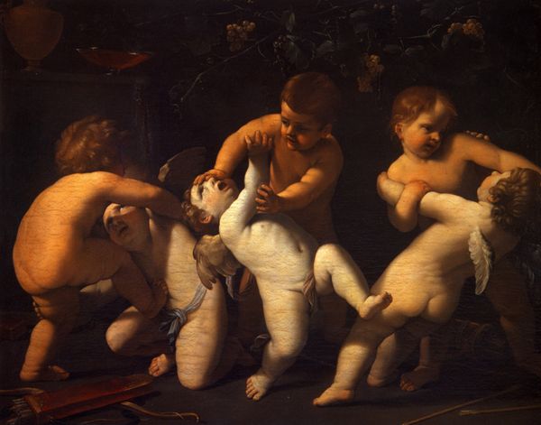 Gabriel von Max created this intriguing composition of oil on canvas, focusing on a monkey family and a doll. The painting is structured around a central arrangement of figures set against a dark background. The muted palette of browns and grays, punctuated by the pale skin of the doll, creates a subdued atmosphere. The texture of the monkey’s fur and the doll's porcelain skin are rendered with fine detail, adding a tactile dimension to the visual experience. Von Max, influenced by Darwin's theories, used the monkey figure to explore the boundaries between humans and animals. The doll, a stand-in for human childhood, introduces a layer of artifice. This juxtaposition invites a contemplation of how we define our place within nature. The work engages with ideas of representation and reality. It challenges viewers to consider the structures that shape our understanding of life, nature, and the self. The painting functions as a complex sign, reflecting broader cultural anxieties about evolution, identity, and the human condition.