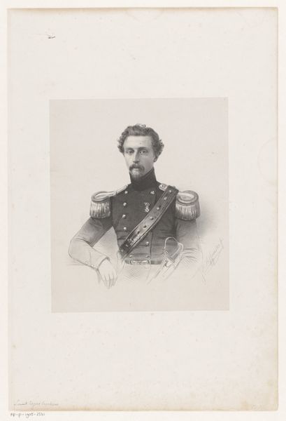 This is a portrait of Charles I, Crown Prince of Würtemberg, crafted by Karl Mahlknecht using an unspecified technique. It’s interesting to consider the image of masculinity that Karl presents, and what this says about power and privilege during the 19th century in Europe. Portraits of royalty often served to reinforce social hierarchies, and this is no exception. The crown prince is adorned in a military uniform, a symbol of authority. But his delicate features and slender waist hint at the complexities of identity within the confines of royal expectations. Consider the tight corset and how this undermines traditional expectations of masculinity. What does it mean to perform one's gender in the context of royal duty? This portrait not only captures an individual, but also invites us to reflect on the broader themes of identity, representation, and the intricate relationship between the personal and the political.