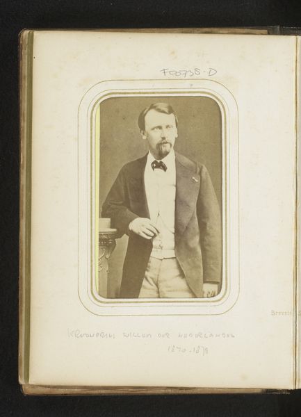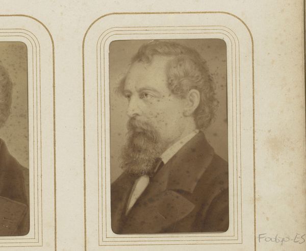 Editor: This print, "Governor Gordon, Georgia," by W. Duke, Sons & Co., dates from between 1885 and 1892. The use of coloured pencil in printmaking gives it a distinctive feel. It strikes me as a rather formal composition, almost like a triptych. How would you interpret the arrangement of elements and its overall structure? Curator: Note how the composition is divided into three distinct panels. The left panel exhibits a coat of arms; the central presents the portrait; and the right illustrates a natural scene. We must analyze each in relation to the others and their individual formal attributes. Consider the use of line: the hard lines defining the coat of arms, the softer lines delineating the governor’s profile, and the vertical cascade of the waterfall. Editor: So, the lines create a kind of visual rhythm, drawing the eye across the artwork? Curator: Precisely. And examine the use of color. The muted tones of the portrait contrast with the brighter hues of the landscape, while the golden yellows in the coat of arms tie elements of light to themes of heritage and governance. Editor: It's interesting how the format itself – like a trading card – also influences how we perceive it, right? It's not just a portrait; it’s an object intended for collection. Curator: Absolutely. The formal elements can be studied not only for inherent qualities but to understand the context in which it was made. Consider its design's function and purpose within the distribution practices of Duke and Sons & Co. Editor: That’s a really insightful perspective, focusing on the interplay of form, function, and context to unpack meaning! Curator: Yes, focusing on how construction affects meaning is so often key.