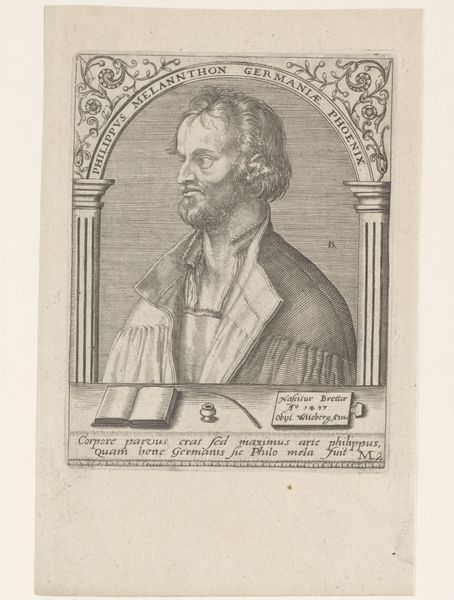 Salomon Savery created this engraving of Gijsbert Voetius at the age of 68 in 1657. Voetius was a significant figure in the Dutch Reformed Church and a professor of theology at the University of Utrecht. This portrait reflects the cultural and religious climate of the 17th-century Netherlands, a period marked by theological debates and the consolidation of Reformed Protestantism. As a leading theologian, Voetius advocated for a strict Calvinist doctrine and was known for his polemical writings against dissenting views. The books in the background, along with his somber attire, point to Voetius’s intellectual and religious authority. The inscription around the portrait identifies Voetius as a professor of theology, emphasizing his role as a defender of orthodox Calvinism in academia. While portraits of religious figures often reinforce established power structures, they also offer insights into individual identity and the values of a particular community. Voetius's stern expression seems to convey a sense of unwavering conviction and commitment to his theological beliefs.