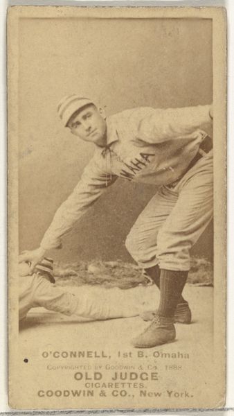 This baseball card featuring Warren William "Hick" Carpenter, was produced by Goodwin & Company for Old Judge Cigarettes. These cards weren't exactly art for art's sake; they were printed, mass-produced photographs inserted into cigarette packs. The sepia tones give it an antique feel, but back then, this was cutting-edge. The image of Carpenter in action, sliding into third base, has a raw, unposed quality, likely captured using new photographic methods. The mass-produced nature speaks volumes about the rise of consumer culture, and the industrialization of leisure. Think about the labor involved: from the photographers, to the printing press operators, and the factory workers packing cigarettes, all fueled by the booming tobacco industry. These cards helped build a sense of community around the sport. They reflect a time when even everyday objects could carry a powerful cultural punch.