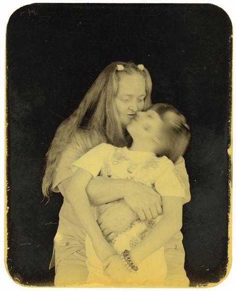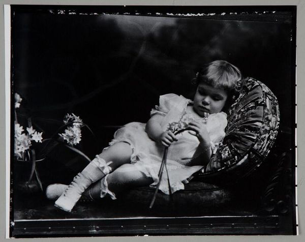 Editor: This is a charming photographic print, possibly from 1909, by Henry Pauw van Wieldrecht, called 'Irène en Renée (twee dochters van de fotograaf) poserend als engelen (cherubini) van Rafaël.' It features two young girls posed as angels, seemingly referencing Renaissance paintings. What strikes me is how the wings are almost crudely attached, contrasting with the soft focus on the girls’ faces. What's your take on this piece? Curator: What's most interesting here is the deliberate artificiality. Van Wieldrecht hasn’t tried to hide the means of production; we can see the seams, the rough application of the wings. The photographic process itself becomes foregrounded, pushing against the symbolic content of angelic innocence. This tension points to the cultural moment, where anxieties about image-making and its relationship to truth were burgeoning. It makes one wonder about the labor involved, and the potential for children’s labour to represent such ethereal imagery. What materials might they have used to create the wings, and where would they source those materials at the time? Editor: That’s a great point! I hadn't considered the construction of the wings as being significant. The material context makes it far more grounded, even subversive. So, it's not just a portrait of idealized children; it’s about the means by which that ideal is constructed, both visually and materially. Curator: Precisely. By focusing on the "how" – the physical processes and the social realities – we can see beyond the sentimental surface. It challenges our consumption of idealized images and prompts a consideration for those less-visible materials and processes, including child labor, involved in production of these idyllic images. Editor: I see this image in a new light now. I’ll definitely be paying closer attention to material choices and methods of creation in my future analysis of art.