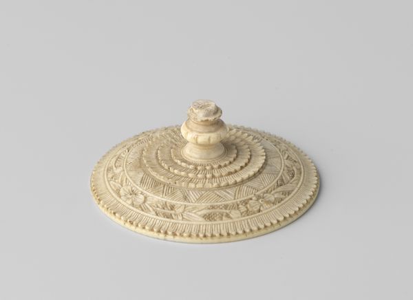 Curator: Looking at this piece, "Doosje van Peter de Grote," dating from 1724, crafted in terracotta, I’m immediately drawn to its almost austere elegance. Editor: Austere is definitely a word that comes to mind. There's a starkness to the geometric carving, but also a kind of refined labor behind it. It makes me think about the economics around terracotta production at the time. Was this intended to mimic more luxurious materials? Curator: Certainly. Peter the Great, even in the trappings of personal items, was about projecting power, westernization, and modernity for Russia. The geometric design and classical form link to those goals. Terracotta, while a relatively common material, takes on a different context when viewed as a product owned by someone of this status. Editor: Exactly, it elevates the material by association. Who was the artist, I wonder? I would imagine they held a specialized role, working perhaps as a craftsman in the royal court. How might their status impact the level of skill involved and the potential meaning invested into the material? Curator: We don't know the individual craftsman unfortunately. The piece serves as evidence of Peter's push for new artistic forms but also his complex relationship with traditional crafts. His policies massively reformed Russian society, changing production and its relationship to courtly power. Editor: It’s amazing how such a simple form can encapsulate these shifts in policy. Curator: Yes. Even a utilitarian object carries symbolic weight when it interacts with power. It's not just an aesthetic choice; it reflects the Tsar's own values and ambitions. Editor: Well, viewing it through that lens has certainly expanded my understanding of not only its artistry, but its important socio-political context. Curator: It does the same for me—highlighting how much of history and culture objects silently absorb through their construction and their place in powerful networks.