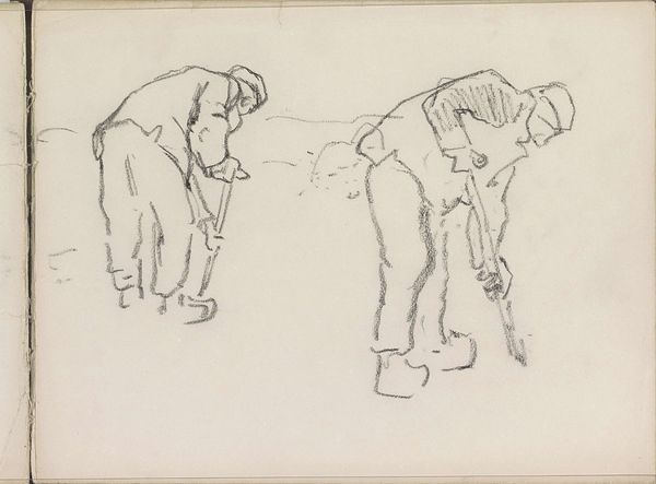 This sketch of two farmworkers by Anton Mauve captures a timeless scene with simple lines, holding deep cultural echoes. The laborers, bent to their work, evoke ancient images of humanity's connection to the land. The humble tools they wield symbolize labor and sustenance, echoing the classical motif of man's struggle with nature. Think of Adam tilling the soil after the expulsion from Paradise – a universal representation of toil and the human condition. This motif of laborers, heads bowed in labor, reappears across centuries and cultures, from ancient Egyptian tomb paintings to Millet's paintings. The stooped posture of the farmworkers also hints at the emotional weight of their labor, a burden passed down through generations. The image is a reminder of the cyclical nature of life and labor, the unending rhythm of planting and harvest, and the deep, subconscious connection we all share with the land.