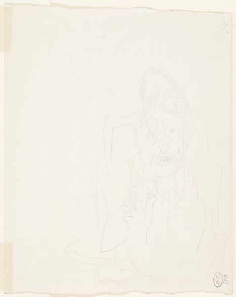 Curator: Good day! Let's discuss William Roberts' pencil drawing, "The critic intervenes; Man milking a goat (reverse)." Roberts, born in 1895, offers us here, a tableau brimming with… potential. Editor: Potential indeed! My immediate impression is… unresolved tension. These figures, caught in their critical act, feel almost trapped by the gridded surface. Curator: The grid is fascinating, isn't it? It speaks to a sense of imposed order, perhaps reflecting the critic's role itself as a framework, a structure through which art is filtered and assessed. Editor: And the way the figures lean into the drawing itself, whispering their observations—are they critiquing the art, or policing its boundaries? Curator: Perhaps both. Roberts might be questioning the nature of artistic judgment, the power dynamics inherent in the critical gaze. What is permissible? Editor: Yes! Or maybe the artist is making us think about the role of the critic in the art world. There's something inherently political about who gets to define and disseminate cultural values. Curator: I love how the little goat teases the viewer at the bottom of the sketch. Its presence invites speculation. Editor: It’s a reminder that beneath all the theory and critique, there's a base element—a primal, earthy energy that defies easy categorization. I have more questions than answers! Curator: As do I. Thank you for this wonderful conversation.