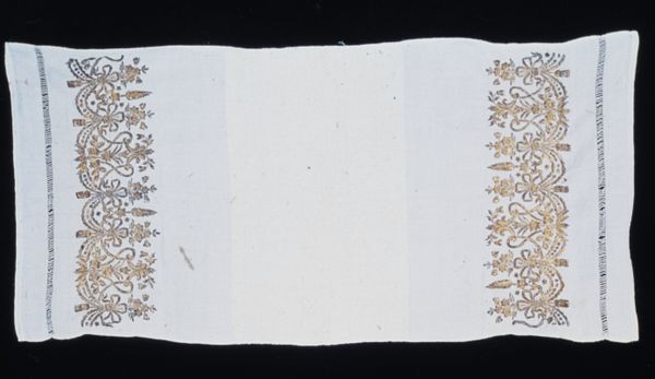 Editor: Here we have a Panel from around the 17th century, made of silk textile. The Minneapolis Institute of Art attributes it to an anonymous artist. I’m struck by how geometric it is, almost like a sampler but far more elaborate. What’s your take on this textile? Curator: This piece raises questions about the function of art within specific communities and power structures. Who created it, and for what purpose? Was it a symbol of status, perhaps displayed within a wealthy household, showcasing the needlework skills of women and girls? Or did it have a ceremonial function, maybe used in religious settings or rituals? The level of skill involved suggests considerable time and resources invested in its production, placing it firmly within a specific social context. Editor: That's interesting. I hadn't thought about the power dynamics embedded in something that seems purely decorative. Are the motifs common for the time? Curator: The birds and geometric plant-like figures might carry symbolic weight tied to the social and cultural values of the era, possibly representing prosperity, fertility, or connection to nature. Considering the historical backdrop of the 17th century—a period marked by burgeoning trade networks and evolving social hierarchies—how does this textile reflect and participate in those dynamics? Were there specific regulations or cultural expectations regarding textiles during this era, influencing production and consumption? Editor: So, seeing it just as pretty is missing a whole dimension of socio-political influence! I never thought a piece of fabric could tell so many stories about the society it came from. Curator: Precisely! It's a reminder that art is rarely created in a vacuum; it actively shapes and is shaped by the world around it. The “anonymous” aspect is itself revealing, pointing to the gendered and class-based ways labor was valued, or not, at the time.