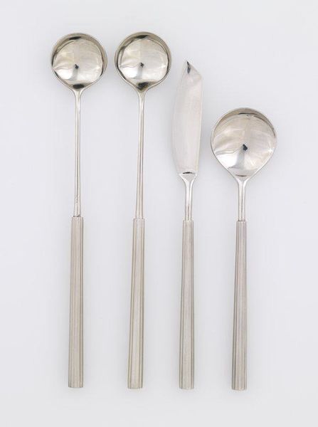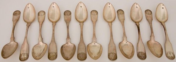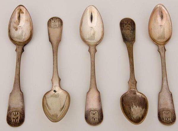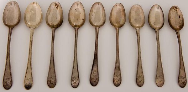 Curator: Here we have "One of a Set of Six Table Spoons" by Matthew Walker. Editor: They have a somber gleam, almost like relics of a bygone era. Curator: Indeed, and it's crucial to consider the cultural narratives surrounding silverware. Who was using these spoons, and what did they represent in terms of social status and power dynamics? Editor: Absolutely. Silver signifies wealth, labor, and consumption. The spoons' very existence speaks volumes about the mining and production processes. How were these spoons crafted, and what was the status of the silversmith within society? Curator: The spoons become tools for exploring class, gender, and the performative aspects of dining. Silverware is never just silverware, it's always a symbol. Editor: A symbol forged through labor and material transformation. It's a potent reminder of both artistry and social stratification. Curator: Precisely, it makes you contemplate the stories these humble objects could tell. Editor: An invitation to consider the world that shaped these spoons.