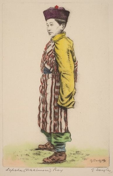 Curator: I am pleased to contribute to this project! Editor: We're looking at "Vrouw met albinisme met hand voor de ogen," an anonymous watercolor portrait from around 1675 to 1725. I find her gaze compelling and was wondering, what strikes you when you observe this work? Curator: Considering this piece through a materialist lens, I’m drawn to the way watercolor is used to depict the woman's clothing and how the artist creates a certain texture with very simple means. What was the production of this watercolor like? Was this created for a noble's collection or for scientific documentation? Editor: Interesting question. It prompts one to look closer! It definitely seems very studied and exact, which to me says it’s more documentation, but how do we explore the economic or cultural conditions surrounding its creation, especially with it being anonymous? Curator: Well, we could research the pigments used. Where did they come from? Who traded them? What social class would have had access to these materials? These questions can give us insight into the cultural context of its creation. The woman's garments and jewelry also give insight to her role. Are the dyes rare or mass produced? This gives an understanding about who had access to being portrayed, and what that could have meant at that point in time. Editor: It's amazing to think about how something seemingly simple, like watercolor, can open up so many avenues of investigation. I'll definitely think differently about portraits now. Curator: Exactly! By looking at the materials and production, we can unlock narratives about labor, trade, and social status that are often hidden in art history. What I have learnt, or at least confirmed, is that art's story relies as much on materials as it does on talent and concept.