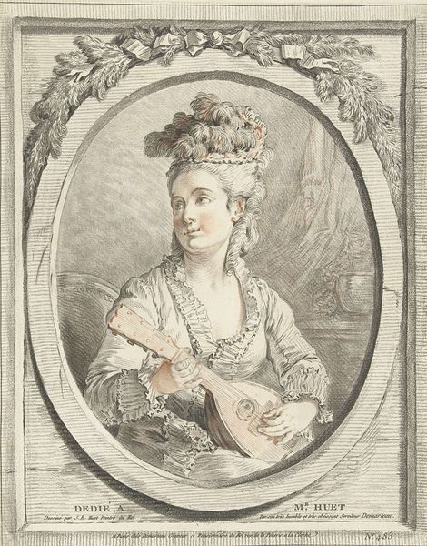 Editor: This etching from 1780, "Juno and the Peacock" by Angelica Kauffmann, showcases a regal woman with her symbolic peacock companion. The details rendered on paper with etching lines are really intriguing; what material or social angles stand out to you? Curator: It's compelling to consider the production of prints in Kauffmann’s era. Etchings democratized images; what was once only accessible to the wealthy as paintings could be circulated and consumed widely as prints. The very act of creating multiples disrupts ideas about authorship and artistic labor. Editor: So, you are saying that the making of this image, an etching, meant more people had access to art. It was not just the rich commissioning paintings. Curator: Precisely. And who controlled these production processes? Did Kauffmann herself etch this, or did she design the image for others to produce? Considering the labor involved – the etcher's skill, the printer's craft, the distribution networks – adds layers to our understanding. Was she challenging the traditional boundaries between the fine arts and printmaking? Editor: It seems revolutionary to view prints in that era not only as copies, but as important and accessible original art in themselves. Do you think the rise of prints influenced the art market? Curator: Undoubtedly. Consider the materials – the paper, the inks. These were traded goods. Art wasn’t separate from everyday manufacturing but tightly entangled with it. Think about the consumers - this also reflects on the social expectations and class system of the late 18th century. Editor: I’d never considered an etching as part of material and social history, but this sheds new light on prints as being culturally meaningful beyond just being beautiful images. Curator: Right, shifting our attention to the labour and materiality involved, the cultural and historical impact is unavoidable.
