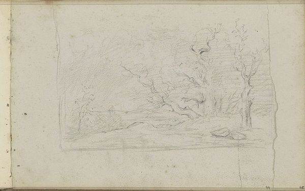 Willem Cornelis Rip made this pencil drawing, "Figure on a Forest Path Along a Stream," sometime in the late 19th or early 20th century. Rip was Dutch, and this drawing exemplifies the kind of landscape imagery that was popular at the time. The art world of the Netherlands during Rip's time was shaped by various art societies and academies. These institutions played a significant role in defining artistic styles and dictating what was considered acceptable art. The Hague School, for example, emphasized realism and a muted palette, reflecting a desire to capture the specific atmosphere of the Dutch landscape. Rip's choice of subject matter, a figure in a natural setting, also reflects the increasing urbanization of the Netherlands and a longing for a simpler, rural life. The image itself creates meaning through loose lines, capturing an ephemeral moment. Understanding art like this requires knowledge of its time. By researching art societies, exhibition records, and critical reviews, we can reveal the social and institutional contexts that shaped its creation and reception.