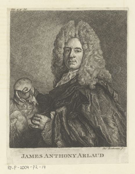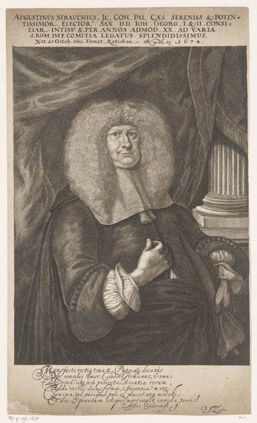 Nicolaus Häublin made this portrait of Heinrich Linck using an engraving technique. The image is created by cutting lines into a metal plate, applying ink, and then pressing paper against the plate to transfer the image. What I find fascinating is how the material qualities of the metal plate and the precision of the engraving tools influence the final appearance of the artwork. Look closely, and you’ll see the network of fine lines that create a tonal range, giving depth and texture to Linck's face and clothing. The engraver’s skill is evident in the rendering of details, from the intricate curls of Linck's wig to the folds of the heavy drapery in the background. Engraving requires incredible patience and precision, reflecting a time when craftsmanship was highly valued. By appreciating the labor and skill involved in its production, we can see this portrait not just as an image of an individual, but as a testament to the rich history of printmaking.