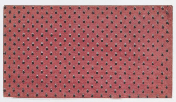 This small sheet with an overall square and star pattern resides at the Metropolitan Museum of Art in New York. The anonymous artist has created a repeating pattern in red ink against a light background, inviting a closer look at its structural composition. Notice the grid of squares, each containing a smaller square within, juxtaposed with the scattered placement of star motifs. This combination creates a dynamic tension between order and subtle chaos. The rough edges of the sheet, coupled with the uneven distribution of ink, further emphasize the material quality of the work, reminding us of its physicality. The interplay between geometric shapes and natural forms destabilizes any clear distinction between the abstract and the representational. The simple act of repetition transforms basic shapes into a complex visual field that challenges our perception. The grid, traditionally a symbol of rational order, is enlivened by the organic feel of hand-drawn stars, suggesting an underlying tension. In this way, the artist prompts us to rethink the boundaries between structure and freedom.