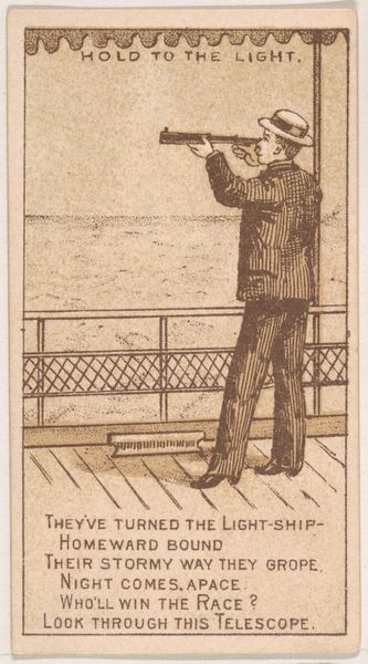 This unassuming card, printed by the Kinney Tobacco Company, presents us with a closed door, barring entry to a 'Wines & Liquors' establishment on a Sunday. This simple scene encapsulates a societal tension—the conflict between leisure and commerce, sacred and profane. Consider the closed door itself. Throughout history, doors have symbolized transitions, passages between worlds, and the liminal space between what is known and unknown. In ancient Egypt, doorways were adorned with symbols to protect the threshold. Here, the closed door, reinforced by the stern 'No Admittance', evokes not just physical exclusion but a denial of earthly pleasures, reflecting deeply ingrained cultural attitudes towards the Sabbath. But the card also hints at something beyond the surface. The instruction to ‘Hold to the light’ suggests a hidden image, a revelation concealed beneath the mundane. This act of uncovering echoes our own quest to find meaning beyond the literal, to illuminate the cultural anxieties and moral debates embedded within a simple image of a closed door. It is a reminder that symbols, like cultural memories, are never truly dormant but waiting to be reactivated, reinterpreted, and imbued with new significance across time.