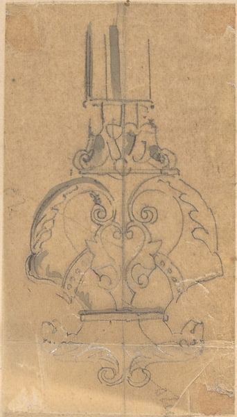 This delicate pencil drawing depicts an incense holder, and was made by the Parisian firm of Feuchère. Without a date, it’s difficult to know precisely when this sketch was produced, but the Feuchère firm was at its most prominent in the first half of the 19th century, becoming known for elaborate metalwork and bronze sculpture. Sketches like these speak to the highly organized methods of production in workshops that operated like small businesses. The drawing shows a combination of classical and Gothic forms, with statues and stylized fleur-de-lis patterns. Incense holders such as this were used in Catholic and other Christian religious ceremonies. They reflect the 19th-century vogue for neo-Gothic design in Europe. The image allows us to reflect on the status of devotional objects in European culture, and the revival of interest in Christian traditions in the post-revolutionary era. The meaning of a sketch such as this is contingent on an understanding of the Feuchère firm, the history of design, and the traditions of Christian worship. Historical resources, such as letters, business records, or church inventories, could shed light on this drawing and its intended purpose.