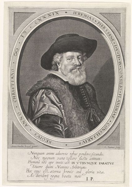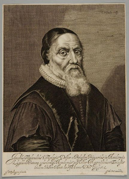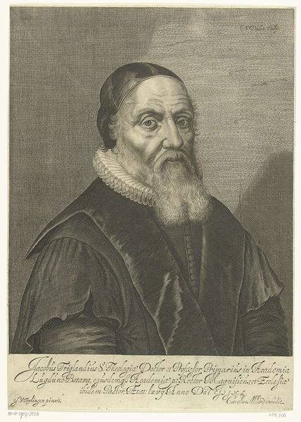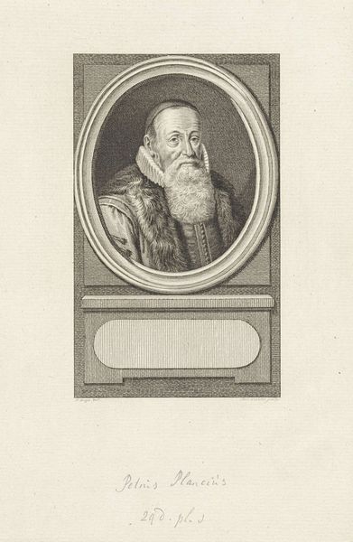 Editor: Here we have Reinier Vinkeles’ 1791 engraving, "Portret van Petrus Plancius", printed on paper. It's a very formal portrait, but his eyes seem kind. What do you see when you look at this image? Curator: I see more than just a formal portrait; I see a carefully constructed image embedded within a complex web of colonial history and scientific ambition. Plancius was a cartographer and clergyman, deeply involved in the Dutch East India Company. Consider the power dynamics inherent in mapping – it’s not just about accurately depicting the world, but about claiming territory and resources. What impact do you think that historical role has on our viewing experience of his portrait now? Editor: So, knowing about Plancius’ role complicates the viewing experience, shifting it away from a simple, admiring gaze. But does that diminish the artistic merit of the piece itself? Curator: The artistic merit remains, but it cannot be divorced from the context. Vinkeles' technical skill in capturing Plancius' likeness is undeniable, but that skill was employed to create an image that served a particular purpose: to legitimize and celebrate a figure complicit in colonial expansion. Think about whose stories get told and whose are erased in these visual representations. Editor: That’s a compelling point. It pushes me to consider how portraits can function as both art and as historical documents, always reflecting the biases of their time. Curator: Exactly! By examining the historical and social forces at play, we can unpack the portrait's layered meanings, and prompting crucial conversations about the relationship between art, power, and representation. So, does this make you look at similar portraits differently now? Editor: Absolutely, I'll definitely be asking more questions about the subjects and the context next time.