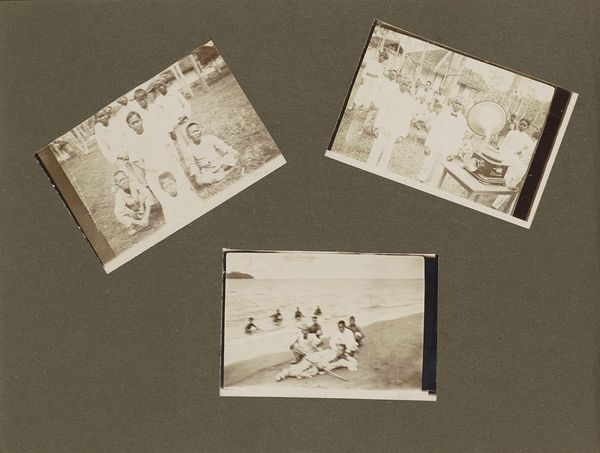 Editor: This is “KLM-personeel onderweg,” or "KLM Staff on the Move," a photographic print from around 1949, currently at the Rijksmuseum. It feels like a scrapbook page, with a collage of different snapshots related to the Dutch airline. What strikes you most about how it is composed? Curator: The overriding structural principle is the arrangement of discrete photographic images on a singular plane. The chromatic austerity further unifies this arrangement, rendering each image equivalent through its black and white tonality. Consider how the variance in scale and orientation introduces visual dynamism, mitigating the potential for a static reading. How do these varying photographic moments relate? Editor: That's a helpful way of putting it. I guess it's meant to evoke a sense of travel and exploration. I see images of planes, staff, and various landscapes. So, what visual relationships stand out to you the most within this collage? Curator: Note the prevalence of the horizon line across numerous images. These recurring lines not only spatially orient the viewer but also generate a visual echo, a connective thread weaving disparate locations into a cohesive visual experience. Observe, too, the dominance of geometric forms, both in the architecture of the aircraft and in the constructed landscapes of the built environment, thereby imbuing this travelogue with a sense of structured order. Editor: I see what you mean! It is organized, even if it appears scattered at first. It highlights the structural elements, such as planes, ground and human figures, through sharp visual organization. Curator: Precisely! Through rigorous compositional and material analysis, we may glean a richer understanding of the artist’s intended construction of the viewer's encounter with it. The semiotic interpretation of line and shape invites a richer contextualization of the subject. Editor: Thanks, this discussion changed the way I viewed this interesting work! I appreciate your insight into visual echoes and structural geometry that I hadn't considered before.