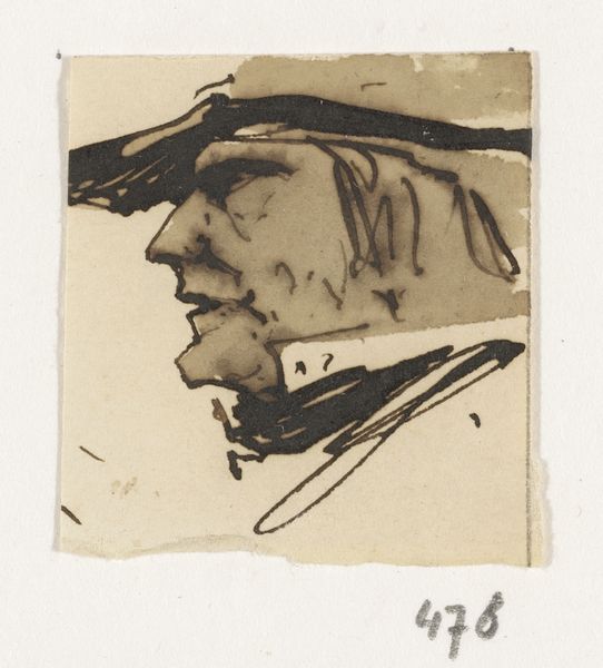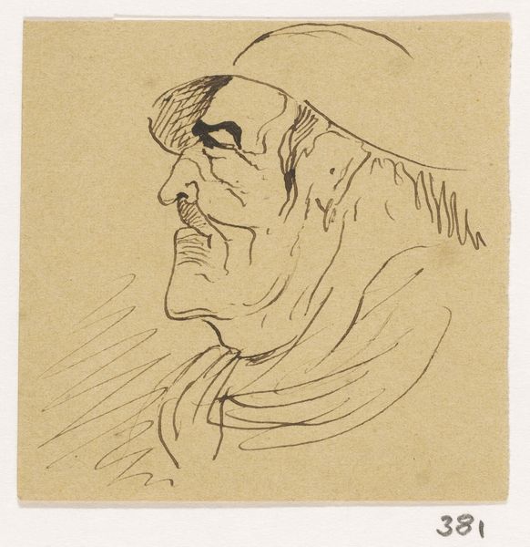 Curator: This pen and ink drawing, simply titled "Twee koppen," or "Two Heads," is attributed to Johannes Tavenraat and dates from somewhere between 1840 and 1880. You can find it here at the Rijksmuseum. Editor: Oh, interesting. My first thought? There’s a real caricatural energy here, isn't there? A kind of grotesque humor bubbling up. It almost feels like a snatched glimpse of gossiping elders. Curator: I think you’re onto something. The directness of the medium certainly lends itself to that sense of immediacy. We might even consider this in the context of emerging class satire in 19th century Dutch art. Editor: Absolutely. And that bold line work! So confident, almost aggressive in places. Makes me wonder what was happening politically, socially, that he was feeling so edgy while doodling in his sketchbook. Was it personal? Was it societal? Did someone annoy him on the streets? Curator: Indeed. The piece can be seen as a reflection of societal tensions simmering beneath the surface during the mid-19th century. Think of the evolving conversations around power structures. Whose faces were, and weren’t, represented in fine art at the time, and to what end? Editor: You're right. But the fact they’re rendered so starkly… they are EVERYONE, too. Aren't they? Like, everyone knows these characters. You see them everywhere, arguing at the market, whispering in church. Makes me almost feel like laughing WITH them and AT them, all at once. Curator: It is tempting to flatten them into mere comedic figures. But let us not overlook the complexities inherent in caricature. In particular, thinking about who is empowered to mock whom, and the historical deployment of this type of representation to marginalize specific groups, seems like a critical move. Editor: I can only agree. Well, I find this one strangely appealing. Like finding a funny little treasure in someone’s old notebook. Thanks for pointing this out. Curator: My pleasure. It’s a reminder of the multifaceted conversations that even a simple drawing can provoke when viewed through various contextual lenses.