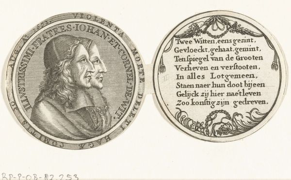 Editor: Here we have "Penning met het portret van Hendrik II, koning van Frankrijk", or "Medal with the portrait of Henry II, King of France," an engraving by Bernard Picart from 1719. It's incredibly detailed, almost like a banknote, but it’s also a little stiff, a bit…uninviting. What do you make of it? Curator: Uninviting, you say? That's fascinating. I see it as a carefully constructed piece of propaganda, of sorts. Consider the historical context; royalty often used medals and prints like these to project power and legacy. Picart is essentially crafting an image, carefully considered, for public consumption. Does that change how you see its "invitingness," or lack thereof? Editor: A bit, yeah. I didn't initially connect it to propaganda. So, the somewhat cold precision comes from needing to convey that authority? It's like he's trying to control the narrative with these really sharp lines and formal presentation. Curator: Exactly. The Baroque loved to celebrate power but also, as we see in other art from the era, it enjoyed intricacy for its own sake. The detailed armor, the laurel wreath… they all build an image of strength and victory. Even the lettering feels precise, almost mathematical. Do you think that detracts from the human element? Editor: Absolutely. I was so focused on the technique that I missed some context. Now that you mention the armor and the lettering, I am able to understand the piece a little bit better. So, I guess I learned that sometimes "uninviting" means "in control." Curator: A wonderfully astute observation. I came into this seeing just another portrait. Your initial reaction reminded me that art also hits us viscerally.