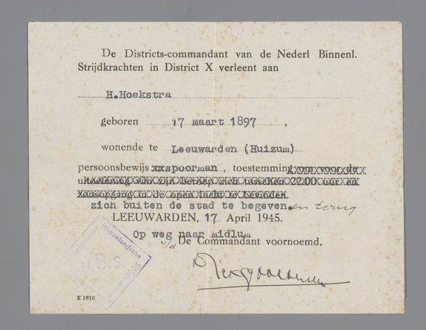 This document, issued by the Burgemeester van Amsterdam on July 28, 1942, is a potent symbol of a dark chapter in history. At first glance, it appears as a simple permit, yet it speaks volumes about control, identity, and survival. Consider the signature at the bottom, an official mark that represents authority and bureaucracy. This seemingly benign act of signing, however, facilitated systematic oppression. It is a chilling echo of other historical documents, like decrees from ancient empires, that similarly wielded the power of the pen to control populations. The very act of documentation—recording names, addresses, and professions—became a tool of dehumanization. The need for Marinus Josephus Janse, a vendor of potatoes and produce, to carry this paper with his bicycle is particularly haunting. The bicycle, a symbol of freedom and movement, now becomes laden with fear, an emblem of restriction. This document, therefore, is not just paper; it is a fragment of collective trauma, reminding us of how easily symbols of order can be twisted into instruments of oppression.