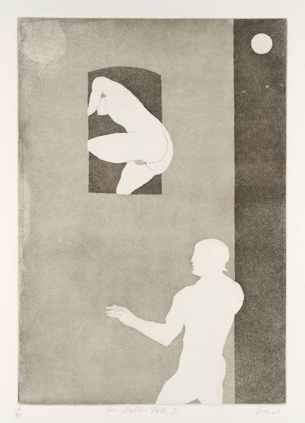 Editor: This is Kiki Smith’s "Free Fall," a lithograph. I’m struck by how vulnerable the figure appears, almost fetal in position. What do you see in this piece, especially given Smith's wider body of work? Curator: Smith often uses the body to explore themes of vulnerability, mortality, and female identity. The pose, suggestive of both falling and floating, invites questions about control and power. How might this image resonate with feminist perspectives on the objectification of the female form? Editor: So, it's less about literal falling and more about a symbolic loss of control within a patriarchal society? Curator: Precisely. Smith challenges us to consider the social and political forces that shape our understanding and experience of the body. Editor: That adds so much depth. It’s not just a body; it’s a statement. Curator: Exactly. Art can be a powerful form of activism.