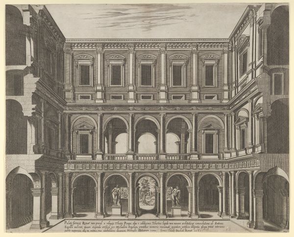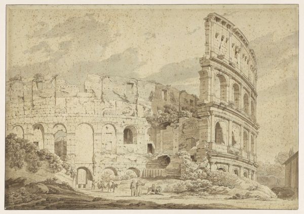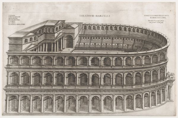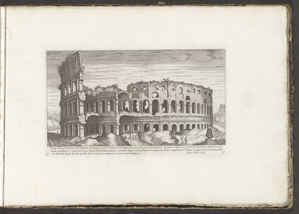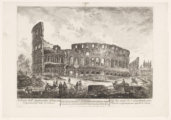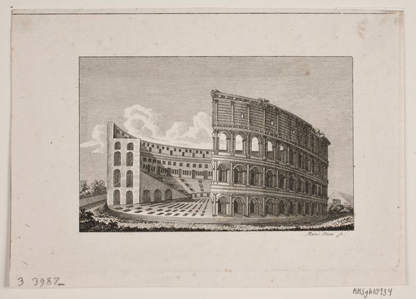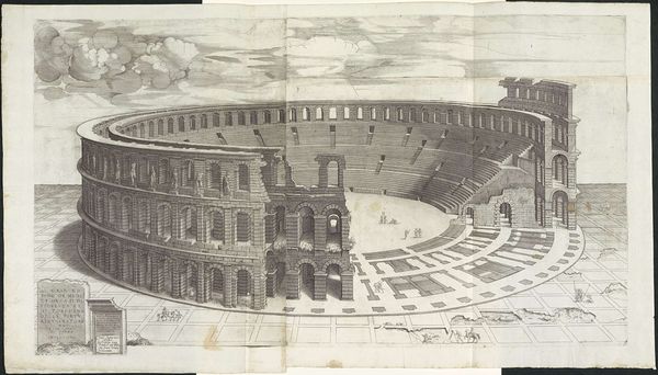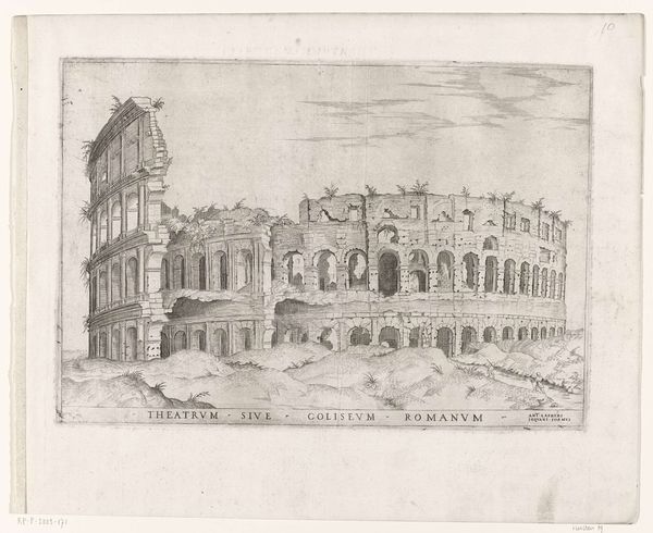 This print of the Amphitheatrum Castrense was made by an anonymous artist using etching. The etched lines create a compelling tension between the real and the represented. The material qualities of the print itself – its paper, ink, and linear composition – direct our attention to the architecture. This architectural representation of the amphitheater highlights the relationship between design, labor, and social function. Consider the original construction: the quarrying of stone, the precise carving of each block, and the assembly of this massive structure. All were testaments to human endeavor. The print captures the essence of that effort, while also reminding us of the social context in which it was made. The amphitheater was a place of spectacle, entertainment, and public gathering. Looking at it today, we can appreciate how the print preserves not just a building, but a set of values, labor practices, and aesthetic ideals. It bridges the worlds of craft, design, and social history.