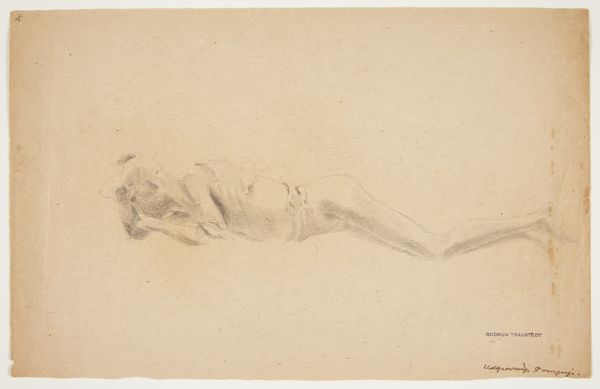 Editor: So, this drawing by Otto Scholderer from 1879, "Seated Young Woman Playing the Mandolin, Detail of Legs and Shoes", rendered in pencil on paper, is fascinating. The focus is so specific. What draws your attention in this particular study? Curator: It's the intimacy of the sketch itself. Look at the quick, almost frantic, application of the pencil. This isn't about the *idea* of a woman playing music, but the material reality of the drawing process attempting to capture fleeting details - the drape of the fabric, the form of the leg and shoe. What paper was available, what kind of pencils did he have? Were these cheap materials, forcing the artist to prioritize certain marks over others? These choices say a lot. Editor: I see what you mean. It's less about idealized beauty and more about the process of observation and the limitations of the medium. Curator: Exactly! And the incompleteness of the figure...it pushes us to consider the act of making as central. This is Scholderer *working*, rather than presenting a polished product. Do you see how that shift, from the final piece to the process, changes the way we value the drawing? Editor: It does. We're no longer just judging the likeness or the subject matter, but engaging with the artist's labor and decision-making, based on what was easily accessed. It makes you wonder what this sketch was practice for. Was there ever a "final" piece? Or was the real art in the study? Curator: Precisely! This seemingly simple drawing opens up questions about the value we place on finished versus unfinished work, and the economic realities shaping artistic production. Editor: I never thought of a simple pencil sketch as speaking to such large issues. Curator: Sometimes, the humblest materials offer the richest insights. It shows us how the work comes to life through available resources.