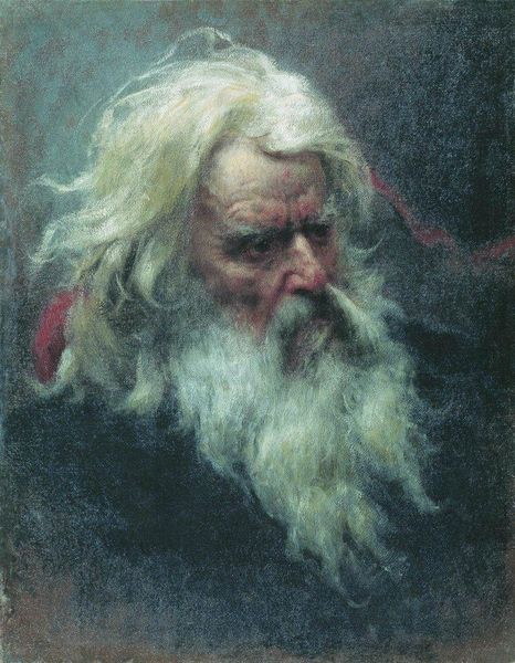Editor: This is Vasily Polenov's "The Head of the Pharisee" from 1884, an oil painting that’s…intense. The gaze is so critical and imposing. What do you make of it? Curator: Oh, he *oozes* judgment, doesn't he? Like he's personally offended by the universe’s very existence. Beyond the obvious "grumpy old man" vibe, I see a painter deeply invested in exploring power dynamics. I imagine Polenov standing before his easel, muttering, “Right, let's paint…moral superiority." It’s fascinating, the way artists use a face to map societal critiques. Do you sense any specific historical anxieties lurking beneath those bushy eyebrows? Editor: I hadn't thought about historical context. The word "Pharisee" itself carries baggage, right? It makes me think about hypocrisy and rigid adherence to rules. Curator: Precisely! It’s as if Polenov’s taken that idea and bottled it, labelled it, and presented it for our inspection. What fascinates me is *why*. Was it a commentary on the church? On social elites? On… well, anyone who looks down their nose at others? It's a question hanging heavy in the air, like the smell of old books and regret. And, honestly, I think it is this kind of ambiguity that transforms a stern portrait into a timeless observation of humanity. Editor: So it is a statement about society? Or an introspection of human nature? Curator: Both! The personal is political, remember? It seems that Polenov captured something intrinsically linked between the private and public sphere, doesn’t it? Perhaps it can even mean the ability we all share to sometimes perceive the world around us with a severe and critical gaze. Editor: That’s a helpful interpretation. It makes me consider how easily judgment comes and the importance of reflection. Curator: Precisely. Maybe art can sometimes show the truth and invite to look a bit more thoroughly at our own head as well.