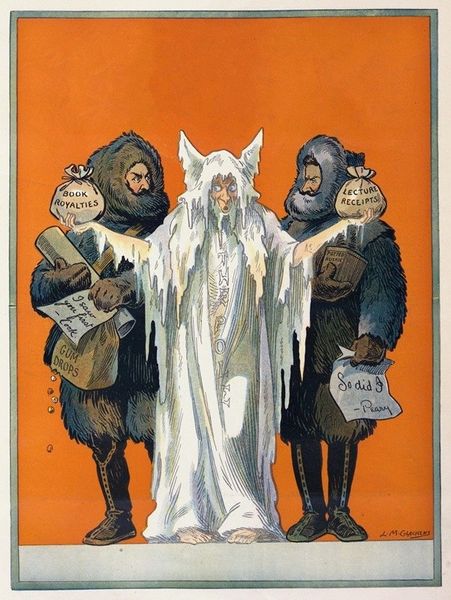 Curator: Well, if this doesn’t just drip with summer in the city. It's "When the Ice Man Gets There" by Louis Glackens from 1906, looks like a drawing or maybe a print? Instantly makes me sweat just looking at it! Editor: The Devil's clearly in the details... literally! What strikes me is the sharp contrast between the man sweltering in what looks like a fur coat, desperate for a cool drink, and the nonchalant Devil offering a single ice cube. It speaks volumes about desire, doesn't it? And unmet needs, perhaps eternal dissatisfaction? Curator: Eternal is right, because everything about the guy shouts “excess.” Like, dude’s wearing what appears to be a winter coat indoors with chains on his feet... Clearly imprisoned by his own… well, I’m not sure what but it’s clearly by something. And is that a bottle of Tabasco alongside his soda siphon? Ouch. That internal struggle seems real, real painful. And, yeah, Glackens captured all this beautifully in watercolor or colored pencil, and maybe that slight, almost amateur style makes it hit harder somehow. Editor: The choice of the Devil is intriguing; it’s an old symbol for temptation, desire… and ultimate disillusionment. Observe those little imp figures prancing along the edge of the table—each a reminder of hidden chaos simmering beneath the surface. It's about the illusory relief we seek in temporary pleasures, wouldn't you agree? Like that one ice cube against the background of a larger firestorm. Curator: Absolutely! The sweat is visible in that color, in that face; the frustration palpable, that's pure brilliance, if slightly on-the-nose! Also that little title, a little note clipped onto the balding guy’s head as "The Ice Man," almost feels cruel, mocking the source of such simple salvation, now apparently tantalizingly out of reach, for him! Editor: Precisely. It's an emblem of fleeting satisfaction in the face of insatiable want. And Glackens is making a broader commentary about societal excess – how our craving for more leaves us forever thirsty and ultimately enslaved. Think about that chained feet detail again and consider it’s metaphorical intent. Curator: I think you've frozen it in place with this little cultural ice pick! Editor: Shall we say that hopefully, after experiencing our take on it, this old caricature now speaks again, to another new generation of summer sweatings, as vividly as when Glackens made it more than a hundred years ago?