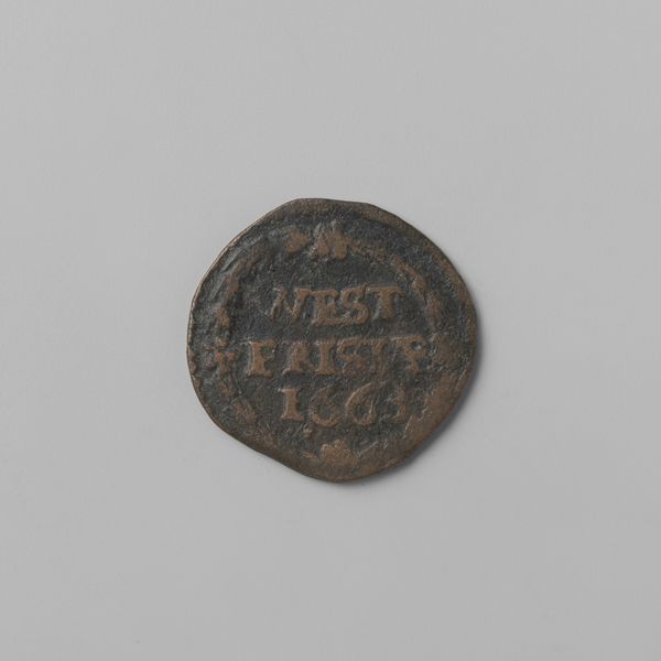 This is a Westfriese bezemstuiver, made in 1766 by the regional authority of West Friesland. Though small, this coin speaks volumes about the intersection of craft and economy. Coins like this one were typically made through a process of die-striking, where a design is engraved into hardened steel dies, and then impressed onto a metal blank. The material is a base metal alloy, likely chosen for its durability and low cost, reflecting the modest value of the coin itself. The process of mass production is evident in its design, as the process must have required skilled engravers and metalworkers to produce dies and operate the coining machinery. The bezemstuiver played a crucial role in facilitating trade and commerce within West Friesland, connecting local producers and consumers, and enabling the exchange of goods and services. Considering the material, making, and social context of this coin allows us to appreciate its significance as a tangible artifact of economic and social life in the 18th century.