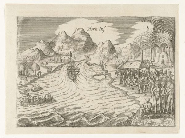 This print, "The Ships in the Bay of Quintero," was made in 1615 by an anonymous artist using engraving, a process rooted in the skilled manipulation of metal. The image is made entirely of lines incised into a copper plate. Ink was then pressed into these lines, and the image transferred to paper through a printing press. The linear nature of the engraving lends itself particularly well to rendering details like the rigging of ships, the folds of clothing, and even the textures of the landscape. But beyond its technical qualities, engraving had a significant social role. In the early 17th century, prints like this one served as a primary means of disseminating information and shaping public opinion. This scene of ships in Quintero Bay, in what is now Chile, speaks to the booming world of maritime trade and exploration, reflecting the economic ambitions of the Dutch Republic. It also embodies the immense labor and resource extraction tied to this period of colonial expansion. Considering the material and the making, this print is not just an image, but a window into the complex interplay of commerce, craft, and colonialism.