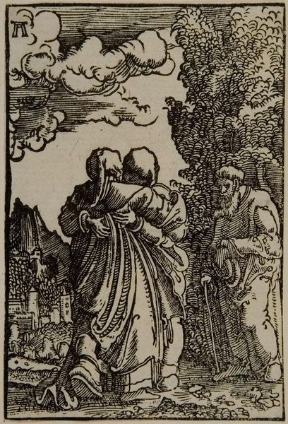 Albrecht Altdorfer created this woodcut, "Lovers," sometime in the early 16th century, deploying the traditional printmaking material of wood. Look closely, and you can see how the fine lines were painstakingly carved into the block to create this intimate scene. Altdorfer would have used a range of specialized tools to achieve the range of tones and textures in the image. This includes the tiny details of the lovers' garments, to the feathery foliage in the landscape. Woodcut is a relief printing technique, meaning that the areas that are to be printed are left raised, while the non-printing areas are cut away. This process requires great skill and precision, as the artist must work in reverse. The labor involved is significant, each line representing hours of focused carving. Consider that this print would have been one of many. Each impression pulled from the block allowing for the wide circulation of Altdorfer's design. This speaks to the rise of printmaking as a burgeoning industry during the Renaissance. It also collapses the traditional distinction between art and craft. It allows for an expanded audience to access the artist's vision.