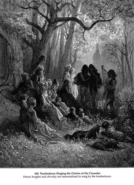 Gustave Doré made this engraving of "The Departure of Thibault, King of Navarre" in the 19th century using a painstaking process. Ink is applied to a block of wood, then the artist uses chisels and gouges to carve away the negative space. The remaining raised lines receive ink, and the image is transferred to paper under immense pressure. Look closely and you’ll notice how the quality of the line varies: thin and delicate in the foliage, thick and bold in the foreground figures. Consider the sheer labor involved in creating this intricate scene, filled with knights, musicians, and courtiers. Doré was a prolific artist, producing countless illustrations for books and periodicals. This print, like others of its kind, was made with mass production in mind, to be circulated widely and cheaply. The contrast between the aristocratic subject matter, Thibault IV, and the democratic accessibility of the printed image highlights the changing social landscape of 19th-century Europe. It reminds us that even seemingly traditional art forms are deeply intertwined with the modes of production and consumption that shape our world.