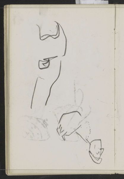 Curator: George Hendrik Breitner’s pencil drawing, "Studie, mogelijk van een voorovergebogen vrouw", dating back to 1893. It currently resides in the Rijksmuseum. Editor: It’s striking how raw and gestural this drawing is; the artist captures such a sense of weight and weariness with so few lines. There’s an almost uncomfortable intimacy to it. Curator: Breitner's focus on the everyday, and particularly the female form, needs to be contextualized within the social restrictions imposed on women during the late 19th century. Her stooped posture might hint at labor or subjugation. Editor: I'm curious about the choice of a pencil sketch. Is this preparatory work? The directness of pencil on paper connects us intimately to the artist's hand. There is something quite democratic in the medium itself, in that it allows such immediacy, unlike, say, oils. Curator: Absolutely, consider Breitner's involvement with social realism. The quick, unassuming nature of the sketch might reflect his commitment to capturing unfiltered moments of ordinary life and disrupting bourgeois norms. The unfinished aspect is vital, because what could this lack of polish signify to his subjects at the time, especially concerning the working class? Editor: Perhaps it also represents a shift in how art was valued, from something precious to something produced quickly, even industrially. What's compelling here is how such modest materials evoke these deep associations, considering how ordinary the pencil, the paper and even the artist's hand were. Curator: Considering that it is called “Studie, mogelijk van een voorovergebogen vrouw” it certainly prompts reflection on our own biases when observing the posture and perceived burdens carried disproportionately. Editor: It speaks volumes with so little—a poignant reminder that even in its most rudimentary form, art can possess profound expressive power. Curator: Exactly. By situating Breitner within the social movements of his time and examining the possible position of women, this sketch challenges traditional interpretations and celebrates these everyday subjects.