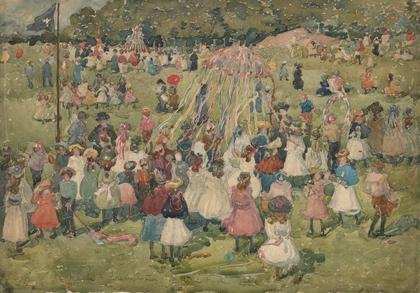 Sarah Purser, an Irish artist, painted this impressionistic scene, *The Circus Encampment,* using oil on canvas. It depicts a temporary settlement, likely in the Irish countryside. The painting offers insight into the cultural landscape of Ireland during Purser's time. Circuses were a popular form of entertainment, but also represented a transient lifestyle often viewed with suspicion by settled communities. The loose brushwork and focus on light create a sense of immediacy, as if capturing a fleeting moment. This would have also made the circus seem less threatening to the upper classes. Note the contrast between the seemingly wealthy children in the foreground and the traveling circus performers behind them. Examining period newspapers, census records, and social histories can help us to understand the relationship between the settled and travelling communities and how class was negotiated in Irish society at the turn of the century. Art serves as a cultural artifact, reflecting societal values and anxieties of its time.
