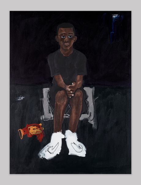 Jean-Michel Basquiat made this portrait, *Elaine*, with paint and collage on canvas, and it feels like the picture is in the process of making itself. The drippy, dark-red skin tone of the face is interrupted by lines of white and purple. The eyes are cartoonish ovals, with a blank stare, and the teeth are like piano keys, each one distinct and separate. I love the way Basquiat throws everything at the canvas. He's not precious with the materials, and you get a real sense of urgency and energy, like the painting is a living thing. The collage elements – little fragments of paper covered in scribbles, notes, and diagrams – create this buzzing, chaotic background, and the face pushes forward. It’s raw, it’s immediate, and it's packed with emotion. Basquiat always reminds me a little of Cy Twombly, another master of the messy line, but with a completely different sensibility. Both artists show us that art isn't about perfection, but about embracing the beauty of the imperfect, and finding meaning in the chaos.