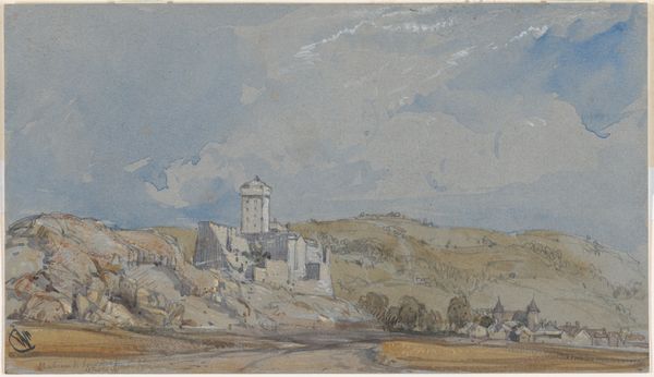 Editor: We're looking at Henry Rushbury's watercolor drawing, "From the Appian Way," created in 1928. I’m struck by how the soft washes give the ancient aqueducts a sense of distance and almost ethereality. How do you interpret Rushbury’s choice of medium in relation to the subject matter? Curator: The ethereal quality isn’t accidental. Watercolors, because of their inherent connection to water – the lifeblood literally channeled by those aqueducts – create a powerful link between the material means of production and the landscape depicted. Rushbury's rendering process reflects a human intervention shaping and controlling nature for consumption. Notice how the subtle variations in tone and texture echo the effects of weathering on the ancient structures, demonstrating the ongoing impact of time and the elements on these essential components of urban life. Editor: That's fascinating. It almost makes the aqueducts appear vulnerable despite their imposing scale. Is that something intentional, do you think? Curator: Consider the socio-economic context. 1928 was a period of intense industrial growth. By choosing watercolor, a medium often associated with leisure and traditional landscape painting, Rushbury creates a visual tension. He evokes nostalgia for a pre-industrial, more agrarian past while documenting the continued existence – though perhaps impending obsolescence – of these ancient technologies. The blurring of those crisp lines through this specific technique speaks volumes about production versus decline. How might we further consider the symbolism of the material and social decay evident? Editor: It's interesting to consider how the materiality of the artwork highlights this relationship between labor, resources, and the changing landscape. It pushes you to think beyond just the aesthetic. I wouldn’t have picked that up on my own. Curator: Indeed, it makes you consider the value we place on permanence versus impermanence, and who benefits.