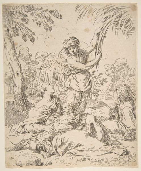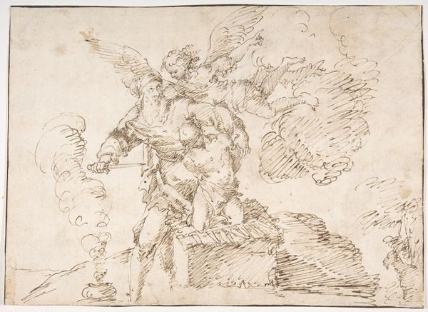 Paolo De Matteis rendered this drawing of Tobias and the Angel with pen and brown ink, and gray wash. Here, we witness a potent symbol of protection, the angel, guiding young Tobias. This motif of divine guidance is not unique; it echoes in countless narratives across cultures, from Hermes escorting souls to the afterlife, to the benevolent spirits of folklore. Note the angel’s raised hand, a gesture of benediction, a motif that transcends epochs, appearing in ancient Roman art and Byzantine mosaics, each time imbued with a sense of divine approval. Consider how the simple act of holding hands—here, a child trusting a celestial being—resonates with primal needs for safety and assurance. This image taps into our collective memory of seeking guidance, engaging viewers on a subconscious level. Such symbolism isn't linear; it resurfaces, evolves, and takes on new meanings, weaving an endless tapestry of human expression.