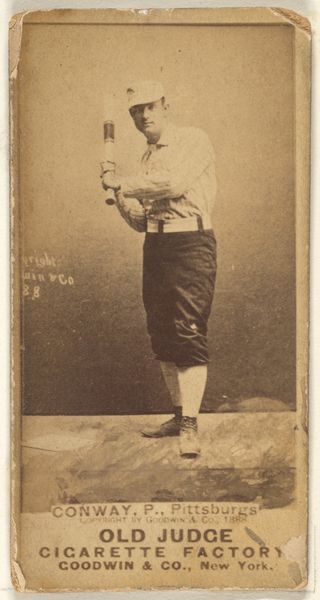 This photographic print of Charles Columbus "Count" Campau was made circa 1888 by Goodwin & Company of New York as part of the "Old Judge" series of baseball cards. The image was made to be included in packages of Old Judge Cigarettes. The late 19th century was a period of rapid industrial expansion, rising consumerism, and new advertising strategies. Tobacco companies like Goodwin & Co. were at the forefront, using images of celebrities, athletes, and other public figures to market their products. These cards reflect the growing popularity of baseball and the emergence of celebrity culture. The Metropolitan Museum of Art as an institution was founded in 1870, and in the 20th century it began to amass collections of popular ephemera such as baseball cards and other forms of industrial art. To understand this image fully, we need to investigate the history of baseball, advertising, and the tobacco industry in the late 19th century. Such research will help us to understand how these small cards reflect broader social and economic changes.
