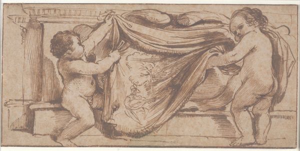 Editor: So, this is Antonio da Correggio's "Foreshortened Angel," a drawing in chalk and charcoal on paper, dating from the 1520s. The figure, kind of floating and nude, it's got this relaxed, almost sleepy quality to it. How do you interpret this work, especially within the context of the Italian Renaissance? Curator: What strikes me is the use of the nude figure, and its inherent political implications when read through a modern, intersectional lens. The male nude, particularly in the Renaissance, often served as a vehicle for exploring ideas of idealized beauty and power. However, these concepts of "ideal" often excluded marginalized bodies. Considering whose bodies are rendered and whose are erased allows us to unpack the narratives being promoted and the silences perpetuated by such works. Editor: That's fascinating. So you're saying that the Renaissance focus on the ideal form also had an exclusionary side? Curator: Precisely. And if we consider this angel as a messenger—whose message is it carrying, and for whom? Is this divinity accessible to everyone, or is it mediated through certain privileged bodies and social structures? Further, it's crucial to investigate whether artistic choices are promoting—consciously or not—specific gendered or racial ideologies. Do you notice how the pose could suggest vulnerability? Editor: I hadn't thought of it like that, but I see what you mean about vulnerability. So, by examining the visual language and social context, we can challenge these Renaissance ideals, maybe even understand how they continue to influence our contemporary perception of beauty and power? Curator: Absolutely! This drawing isn't just an aesthetic object; it’s a cultural artifact reflecting complex power dynamics of its time, with ramifications that resonate even today. The figure becomes less an image of serene beauty and more of a loaded signifier, and one with a lot to unpack! Editor: This perspective is totally new for me. I guess art really is a reflection of the times, with a lasting impact, huh? Curator: Exactly. By looking closely at art history through these intersectional lenses, we start seeing who has been included and excluded and why.
