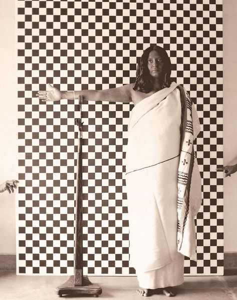 Joan Cassis made this gelatin silver print of Rozella Marie Blackwell sometime before 1996. There’s something so direct in the way this portrait approaches its subject and how the artist uses light and shadow. It’s like a conversation about presence and vulnerability. The monochrome palette helps distill the image down to its essential forms, focusing on the subject's posture, the drape of the dress, and the texture of the backdrop. The light catches the polka dots in Rozella’s dress, and the surface of the mounted gray squares behind her, creating subtle patterns, drawing you in. Her hands rest gently on the horizontal surface, a tender gesture in what feels like a staged and slightly awkward scenario. It’s honest and raw, and kind of funny. Cassis's work reminds me a little of Diane Arbus, in its unflinching gaze, though Cassis seems to have a more generous vision. It’s a reminder that every artwork is a record of how we see, interpret, and engage with the world around us.