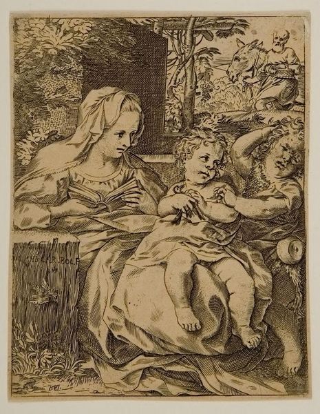 Curator: Welcome. Before us, we have an 18th-century print, “The Virgin and Child with Saint Elizabeth and the Infant John the Baptist,” after a work attributed to the Renaissance master Raphael. Editor: My first impression is one of understated tenderness. The pencil drawing exudes a sense of familial warmth, even through the somewhat faded lines. It feels remarkably intimate for such a classically rendered subject. Curator: Indeed, the composition focuses on a tightly knit grouping of figures. Note the pyramidal arrangement, a classical hallmark, lending stability and balance to the scene. Raphael’s skill lies in harmonizing the figures' forms with a gentle dynamism through contrapposto and subtle gestures. Editor: Considering the period of origin, one can analyze how Raphael navigates prevalent social norms through his subject. The relationship between Mary and Elizabeth can be further investigated through their status as mothers and how those relationships translate within the patriarchal limitations. Curator: The linear precision is noteworthy. The delicacy with which each figure is rendered highlights the subtle variations in texture and tone, particularly evident in the drapery and facial features. The implied depth and volume speak volumes about the artist’s technical capabilities. Editor: And, while we appreciate the masterful execution, we should acknowledge that it's from the 18th century. A time when wealthy European men had access to early prints such as these. One could read into this print a visual validation of a power structure where elite members of society gaze down on the iconic and somewhat sacralized image of mothers and children. Curator: While those power structures are definitely worth analyzing within their proper cultural and temporal contexts, one must concede that this print masterfully reflects the spirit and classical aesthetic valued during the Renaissance. Editor: It's impossible to deny the talent that influenced it and how images like this reinforce conventional roles that impacted the treatment of real women and their representation in the social sphere. Curator: Ultimately, examining this piece allows us to examine and understand the aesthetic, thematic, and technical qualities it offers us, as well as to consider the piece’s more intricate complexities, making it that much richer for its ability to be approached through myriad avenues of inquiry. Editor: Yes, it challenges us to analyze visual culture as active participants instead of passive viewers. And that approach gives us power over art.