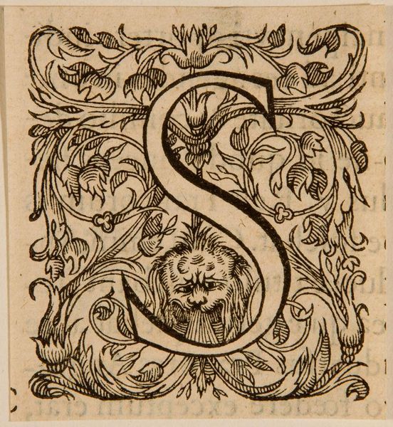 Editor: Here we have "Letter S" by an anonymous artist, residing at the Harvard Art Museums. It’s a decorative initial, with floral designs. What meaning do you find in such stylized imagery? Curator: Well, the letter 'S' itself, beyond its phonetic value, becomes a vessel. The floral motifs speak to ideas of growth, beauty, and even fragility. Consider how these symbols, repeated over time, reinforce a cultural memory of nature's cyclical power. Does the black and white contrast suggest anything to you? Editor: It does create a strong, stark image. It reminds me of woodblock prints, emphasizing the design itself. Curator: Exactly! The starkness emphasizes the design. How do you think that impacts its message? Editor: Perhaps it focuses the viewer on the symbolic meaning and less on individual expression? Curator: Precisely. It becomes a shared visual language. I appreciate your insights into the interplay of symbol and form. Editor: I hadn't considered the shared visual language of such a simple letter. Thanks!
