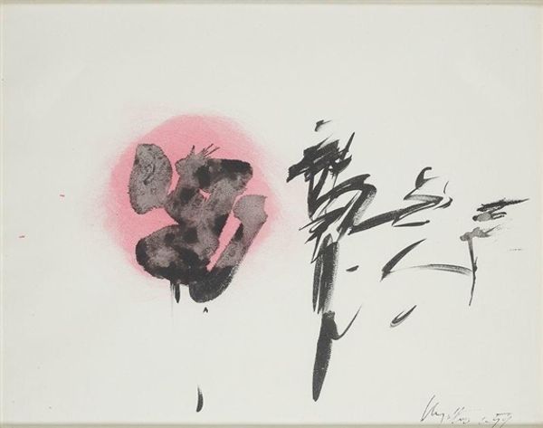 Enji Torei created 'Mu' using ink on paper, exemplifying the profound simplicity of Zen calligraphy. The deep black ink, applied with swift, assured strokes, speaks volumes. Its density and sheen reveal the quality of the inkstone and the skilled hand grinding it. The brushwork is direct, unhesitating, embracing the imperfections that arise from the immediacy of the moment. This isn't about flawless execution; it is about capturing the essence of "Mu" - nothingness, or no-mind - a concept central to Zen Buddhism. 'Mu' transcends mere aesthetics. It's a physical record of a meditative act. Torei's brush becomes an extension of his mind, channeling a state of being into a tangible form. It is the transformation of mental discipline into a handcrafted form. Ultimately, the power of this work lies not just in its visual impact, but in the profound connection between materials, process, and spiritual intent. It challenges us to look beyond the surface and recognize the depth of meaning embedded in simple, deliberate acts of making.