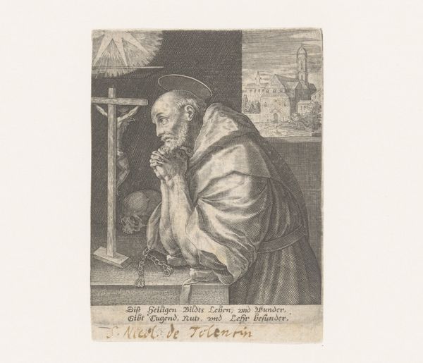 This engraving by Claude Mellan captures Saint Francis of Paola in deep supplication. The saint kneels before an altar, upon which rests a skull, a memento mori, reminding us of the transience of life. But it is the radiant crucifix that draws our eye. Emanating light, it echoes the ancient symbol of the sun, a life-giving force revered across cultures. Think of the Egyptian sun god Ra, or the Greek Apollo. This motif of radiating light signifies divine presence. Yet, here it also speaks to a deeper psychological need: our longing for the transcendent. The saint's devotion taps into this collective yearning, projecting faith as a powerful emotional force. The motif, in this context, becomes a testament to the cyclical nature of symbols, how they are perpetually reborn, embodying humanity's quest for understanding.